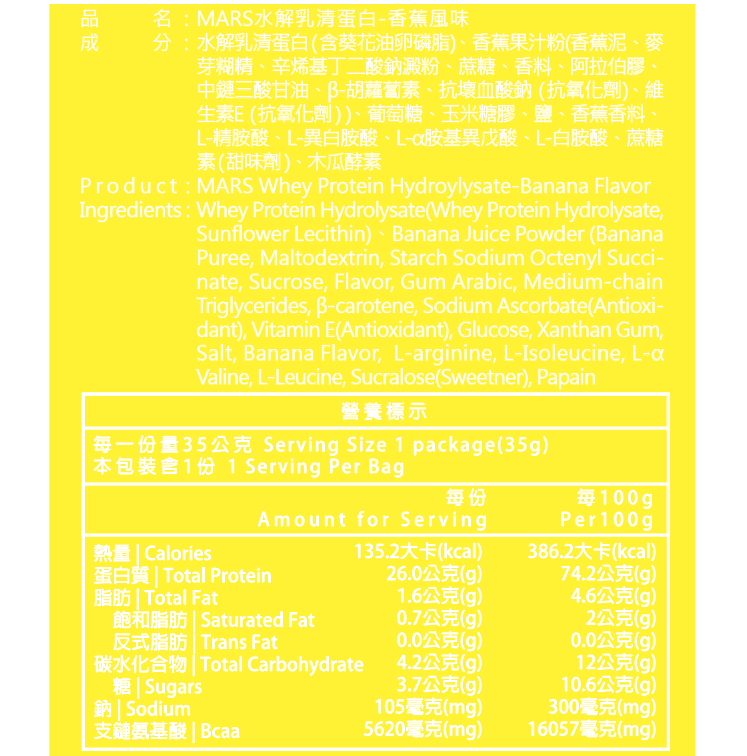 香蕉 (水解蛋白) BANANA FLAVOR WHEY PROTEIN (HYDROLYSATE)
