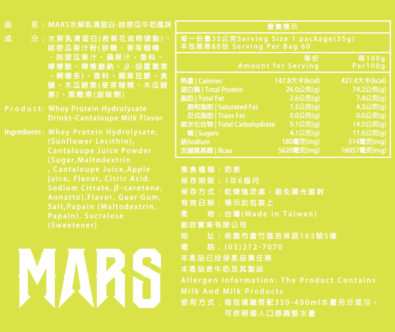 哈密瓜牛奶 (水解蛋白) CANTALOUPE MILK FLAVOR WHEY PROTEIN (HYDROLYSATE)