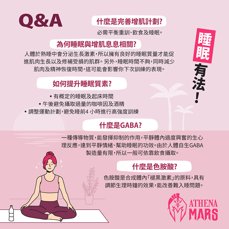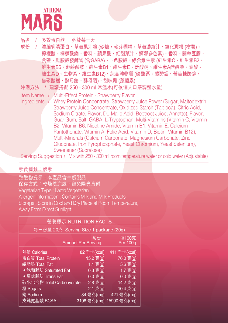 ATHENA Strawberry Flavor Multi-Effect Protein is added with GABA calming elements and tryptophan to help regulate the biological clock and help improve sleep quality.