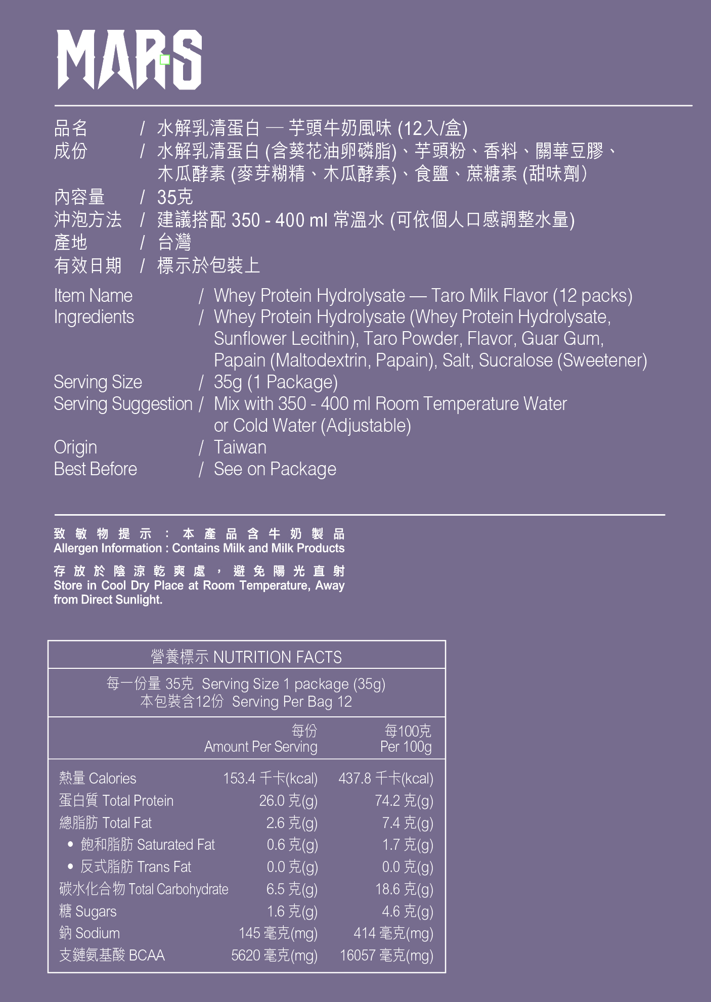 採用台灣原個芋頭製造,加入最高等級的蛋白粉「水解乳清蛋白」
